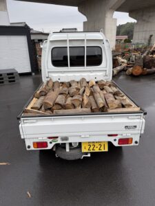 本日は、庭真ガーデンハウス様の紹介で、薪ストーブユーザー様のお家に薪の配達へ軽トラ2車で行ってきました。